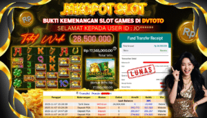 Selamat kepada User id : JO**** Telah berhasil mendapatkan kemenangan besar pada permainan SLOT WILD WILD RICHES MEGAWAYS  Kemenangan Sebesar Rp. 26.500.000,- Setelah mengisi formulir withdraw dengan kurung waktu hanya 5 – 10 menit pihak dvtoto sudah melakukan transfer kepada pemilik Userid dan dana sudah dapat di cairkan oleh pemenang. Bukti pembayaran yang kami berikan merupakan bukti pembayaran yang SAH / VALID yang langung di dapatkan melaui tanda transfer transaksi dari Bank yang di tuju.