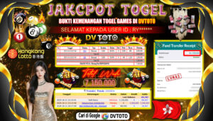 Selamat kepada User id : RY**** Telah berhasil mendapatkan kemenangan besar pada permainan TOGEL HONGKONG LOTTO Kemenangan Sebesar Rp. 7,150,000,- Setelah mengisi formulir withdraw dengan kurung waktu hanya 5 – 10 menit pihak dvtoto sudah melakukan transfer kepada pemilik Userid dan dana sudah dapat di cairkan oleh pemenang. Bukti pembayaran yang kami berikan merupakan bukti pembayaran yang SAH / VALID yang langung di dapatkan melaui tanda transfer transaksi dari Bank yang di tuju.