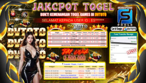 Selamat kepada User id : ES**** Telah berhasil mendapatkan kemenangan besar pada permainan TOGEL POOL SINGAPORE Kemenangan Sebesar Rp. 2.500.000,- Setelah mengisi formulir withdraw dengan kurung waktu hanya 5 – 10 menit pihak dvtoto sudah melakukan transfer kepada pemilik Userid dan dana sudah dapat di cairkan oleh pemenang. Bukti pembayaran yang kami berikan merupakan bukti pembayaran yang SAH / VALID yang langung di dapatkan melaui tanda transfer transaksi dari Bank yang di tuju.