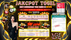 DVTOTO JACKPOT TOGEL POOL SINGAPORE Rp. 2.900.000,- LUNAS