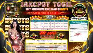 Selamat kepada User id : GA**** Telah berhasil mendapatkan kemenangan besar pada permainan TOGEL TOTO MACAU 4D Kemenangan Sebesar Rp. 6.740.000,- Setelah mengisi formulir withdraw dengan kurung waktu hanya 5 – 10 menit pihak dvtoto sudah melakukan transfer kepada pemilik Userid dan dana sudah dapat di cairkan oleh pemenang. Bukti pembayaran yang kami berikan merupakan bukti pembayaran yang SAH / VALID yang langung di dapatkan melaui tanda transfer transaksi dari Bank yang di tuju.